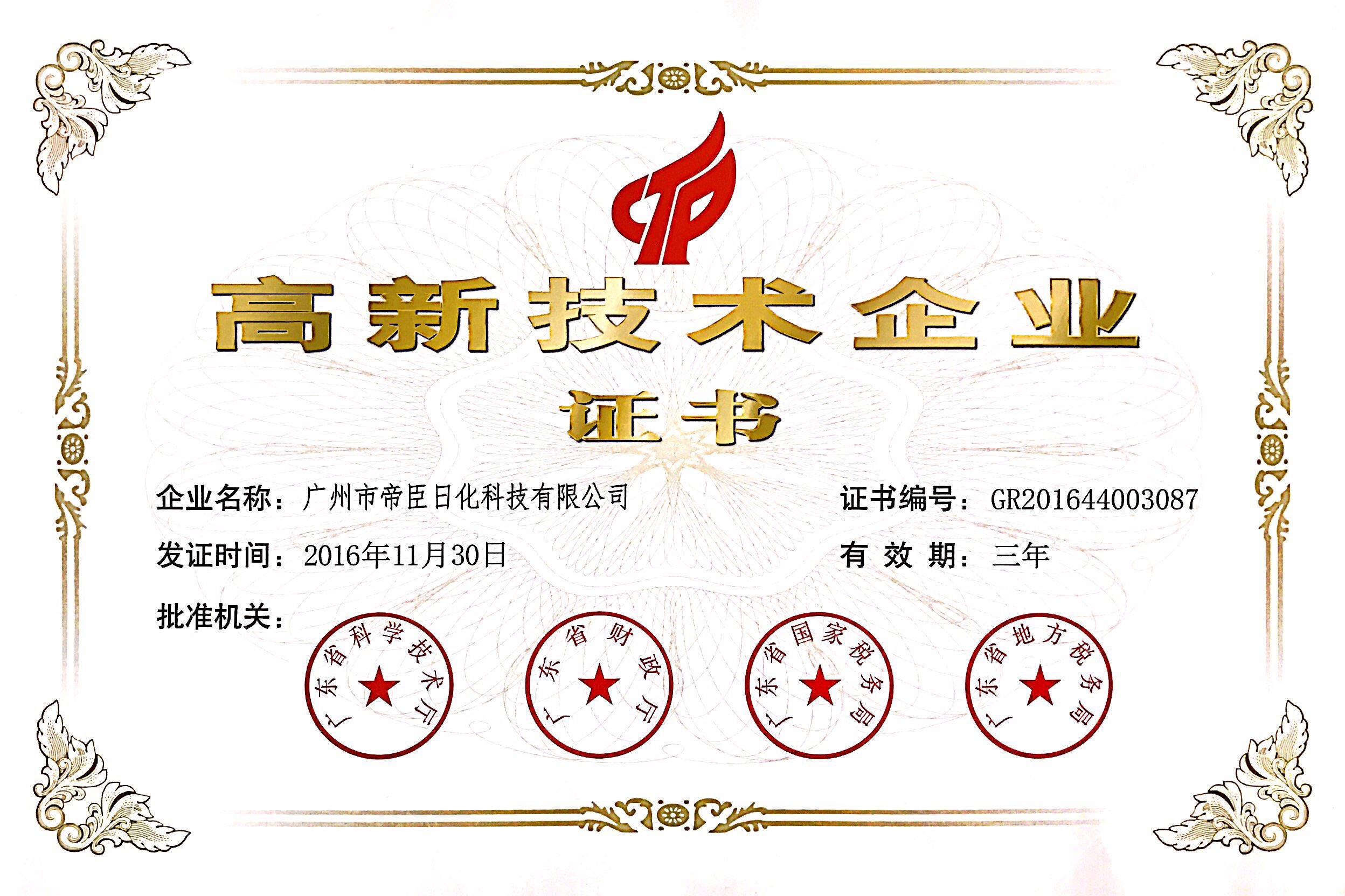 帝臣公司高新技术企业证书 | 2017-05-14 | JPG | 716K |