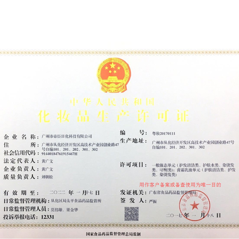 帝臣公司新版化妆品生产许可证二证合一 | 2017-05-14 | JPG | 271.4K |